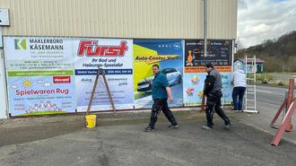 Der CCV reinigte die Flächen rund und das Vachwerk und wechselte die Werbebanner an der Fassade.