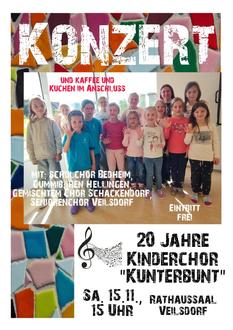 Am Sa. 15.11. feiert unser Kinderchor „Kunterbunt“ nun sein 20-jähriges Jubiläum. Um 15 Uhr findet im Rathaussaal in Veilsdorf unser Festkonzert statt. Wir haben uns dazu einige Gäste eingeladen, zum Beispiel den Schulchor Bedheim, den ich 2018 gegründet habe, den Kinderchor „Gummibären“ aus Hellingen unter Leitung von Gabi Pfeffer, den Gemischten Chor Schackendorf und den Seniorenchor Veilsdorf unter den Leitungen von Hans und Selma Pfeifer. Mit allen Chören gab es viele schöne gemeinsame Erlebnisse in den letzten 20 Jahren.