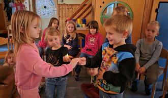 erklang es aus dem Kindergarten der „Leiten-Strolche“ am 11.11.2025. Im Vorfeld hatten die Kinder fleißig Martinslieder gelernt und Laternen gebastelt, um für diesen Tag gerüstet zu sein. Am Morgen des Festtages hörten die Kinder die Geschichte von Sankt Martin, diese brachte ihnen die Bedeutung des Teilens näher. Eine Lichterspirale, die bei uns schon Tradition hat, und eine Klanggeschichte über den heiligen Martin leitete das nächste Highlight ein. Alle Kinder trafen sich im Gruppenraum der „Großen“, um das traditionelle Sankt Martinsspiel zu sehen, das von den Erzieherinnen und einigen Kindern aufgeführt wurde. Zum Abschluss des Festes teilten alle gemeinsam Kekse und zogen stolz mit ihren selbstgebastelten Laternen durch die Räume der Kita.