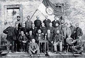 Ein historisches Foto des Gesangvereins mit der Vereinsfahne, die leider nicht mehr existiert: