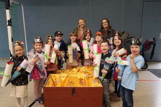 Dort wurde dann voller Spannung die Schatztruhe geöffnet und alle Piraten konnten es kaum erwarten, eine Zuckertüte im Arm zu halten.