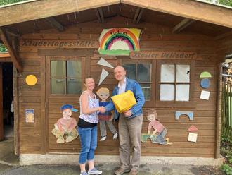 Bürgermeister Stefan Ullrich gratulierte Frau Anne Langguth zu ihrem 15-jährigen Dienstjubiläum bei der Gemeinde Veilsdorf. Er dankte ihr für die geleistete Arbeit als Erzieherin der Kindertagesstätte “Unterm Regenbogen“ in Kloster Veilsdorf und wünschte ihr für die Zukunft alles erdenklich Gute.