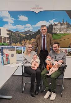 Familie Funke und ihre Drillinge zum Besuch bei Landrat Reinhard Krebs