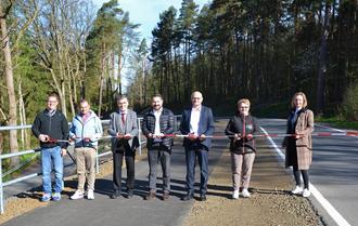 BAD LIEBENSTEIN. Zum Ausbau des Radverkehrs sowie zur Verbesserung der Sicherheit von Radfahrern konnte Landrat Reinhards Krebs gemeinsam mit dem Bürgermeister der Stadt Bad Liebenstein, Dr. Michael Brodführer, und dem für Straßenbau zuständigen Dezernenten des Wartburgkreises, Udo Schilling, am 11. April einen straßenbegleitenden, kombinierten Geh- und Radweg entlang der K88 (zwischen Bad Liebenstein und Meimers) einweihen. Die Planungen für die 526 Meter lange Ausbaustrecke hatte das Amt für Liegenschaften und Schulverwaltung des Landratsamtes Wartburgkreis bereits 2021 begonnen, 2022 konnte Baurecht geschaffen und eine Förderung über das Sonderprogramm „Stadt und Land“ des Bundes beantragt werden. Baubeginn war im September 2023. Die Planungs- und Baukosten belaufen sich auf rund 1.165.000 Euro, davon konnten rund 862.000 Euro über Fördermittel abgedeckt werden.