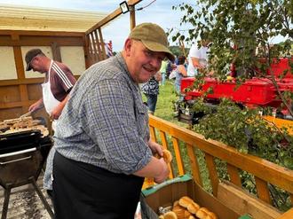 Der Titschendorfer Bürgermeister Torsten Bechert half am Sonntag unter anderem am Rost.