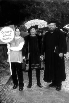 Der Höhepunkt war der Historische Festumzug. Tausende Zuschauer, oft im Regen, konnten erleben, mit wieviel Freude und Hingabe Fußgruppen und Fuhrwerke die einzelnen Bilder zur Geschichte unserer Stadt zeigten.