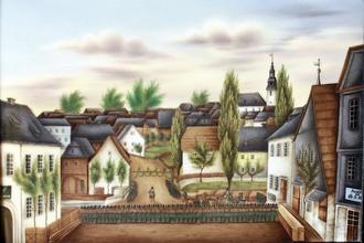 Ein weiterer Bürger ist im Besitz eines rechteckigen gerahmten Porzellanbildes, das ebenfalls in feinster Lupenmalerei den Durchzug des Fürsten Heinrich LXII Reuß jüngere Linie, über den geschmückten Marktplatz von Wurzbach im Jahr 1848 zeigt.