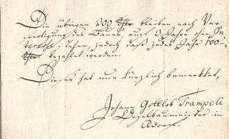 Trampelis Unterschrift unter den Orgelbauvertrag