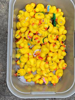 Gespannt wurde am Uferrand mitgefiebert, als dann die ersten Enten im Ziel eintrafen. Plätze wurden von 1-10 vergeben an die schnellsten Entchen. Natürlich gab es für die Bummelente auch einen Preis.