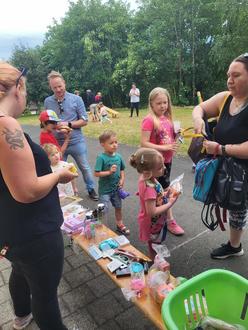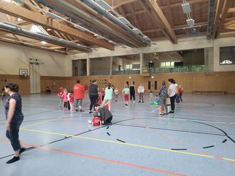 An dem vorletzten Trainingstag vor den Sommerferien ging es vor der großen Turnhalle sportlich zu. Eingeladen waren die Kinder beider Sportgruppen sowie deren Eltern, Großeltern, Geschwister und auch neue Schnupperkinder waren herzlich willkommen.