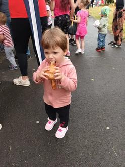Zur Stärkung bekam jedes Kind eine echte Thüringer Roster sowie genug zum Trinken, denn die Kindergruppen hatten erfolgreich beim Trikottag des Saale-Orla-Kreissportbundes teilgenommen und ein Grillpaket gewonnen. Dank der großzügigen Spende des Friseursalons „Wunderschön“ durften auch alle Erwachsenen Roster und Getränke gratis zu sich nehmen.