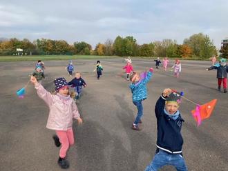 Die Kinder der Integrativen Kindertagesstätte Ibenhain/Waltershausen ließen zu unserem Herbstfest am 18.10.24 ihre Drachen steigen. Nach einem gemeinsamen Frühstück in den Bereichen, mit schönen Herbstliedern und Gedichten, feierten die Kinder das Fest mit unterschiedlichen Themen. So waren die Kleinsten Igel, andere Kürbisse und Gespenster, aber auch Blätter und Äpfel waren zu bestaunen. Die kleinen Knöpfe und die Rasselbande konnten ihre selbstgebauten Drachen mit viel Spaß fliegen lassen. Das bunte Treiben ging im Kindergarten weiter, dass dank der mitgebrachten Leckereien der Eltern für alle ein tolles Erlebnis war.