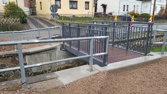 Ersatzneubau der Fußgängerbrücke. Die Restleistungen werden bis Ende April 2025 abgeschlossen. Gesamtkosten belaufen sich auf ca. 160.000 €.