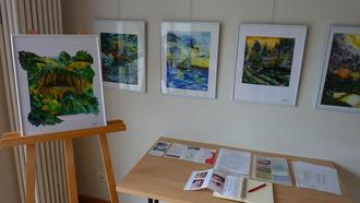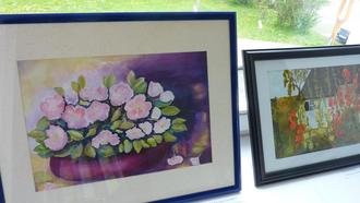 Die Sonderausstellung von Mutter und Sohn Mädel passt zur aufblühenden Natur! Die gelernte Floristin malt und malt, ihre Stärke sind die Aquarelle mit Blumen. Und die ersten fanden am ersten Tag ihre Käufer!