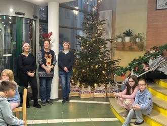 Pünktlich zu Beginn der schönen Weihnachtszeit erstrahlte wieder ein hübsch geschmückter Weihnachtsbaum im Foyer der Traumzauberbaum-Schule. Darunter konnte dann der Nikolaus seine gut gepackten Kisten stellen, die die Wichtel des Fördervereines am Montag, den 08. Dezember allen Klassen überreichten. Jede Klasse bekam Süßigkeiten, Obst und Lernspielzeug. Ein ganz herzliches Dankeschön dafür.