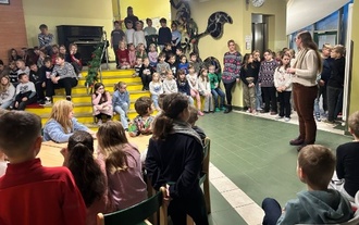 Am letzten Mittwoch, d. 17.12.2025 vor den Weihnachtsferien, fuhren einige Schüler der vierten Klassen zu einer ganz besonderen Buchvorstellung nach Sömmerda. In der Verkehrswacht wurden sie dazu mit Tee und Keksen freundlich von Evelyn Dahlke, Leiterin der Kreisverkehrswacht und Autorin des Buches "Hugos Erlebnisse in der Menschenwelt", empfangen. Das Buch ist bereits der 3. Band der Reihe um Familie Bärie. Die Kinder, die den Inhalt bereits kannten, gestalteten mit ihren Zeichnungen aus dem letzten Schuljahr das Buch mit. Endlich konnten die Illustratoren das fertige Werk bewundern. Nach einigen Informationen zur Reihe, sowie einem Ausblick auf den nächsten Teil endete die Buchvorstellung und jedes Kind erhielt ein Exemplar. Ganz gespannt wurde gleich nach dem eigenen Bild gesucht. Voller Stolz und mit dem Ausblick, eventuell auch im nächsten Jahr am Projekt zur Illustration von Band 4 teilzunehmen, ging es wieder zurück zur Schule.