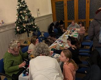 Die Schlange am Grill riss nicht ab, so dass wir zweimal bei der Fleischerei Nachschub an “normalen” Bratwürsten ordern mussten. Am Ende des Abends waren dann tatsächlich 270 Bratwürste gebraten und von unseren zahlreichen Besuchern genussvoll verspeist. Während sich die Erwachsenen in der lauen Novembernacht Glühwein und Bier schmecken ließen, mit Freunden ins Gespräch kamen, konnten unsere kleinen Gäste im Vereinshaus weihnachtliche Basteleien gestalten.
