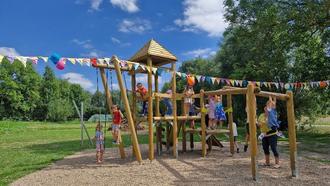 So viele strahlende Kinderaugen hat man auf dem Herrnschwender Kinderspielplatz schon lange nicht mehr gesehen. Die Stadt Weißensee hat im Ortsteil Herrnschwende für den Spielplatz rund 22.000,-- Euro in neue Spielgeräte investiert. Errichtet wurden ein Kletter- und Rutschturm sowie verschiedene Balanciergeräte.