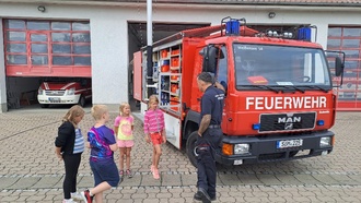 In der zweiten Woche ging es hoch hinaus. Unter dem Thema "Feuer, Wasser, Erde, Luft" ging es am Montag zum Baumkronenpfad in den Hainich. Zwischen Buchen, Ahorn und Eichen spaziert man dort in luftiger Höhe. Mitte der Woche ging es zur Feuerwehr, wo man das Element Wasser und dessen Kräfte erfuhr. Die zwei geschulten Feuerwehrleute Ortlepp und Hollmann erklärten zudem wie ein Löschfahrzeug ausgestattet ist.