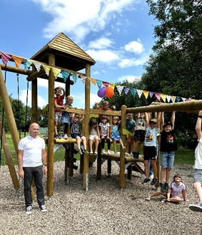Am Dienstag, d. 20. August 2024 war es dann so weit. Der Bürgermeister, Daniel Ecke, eröffnete offiziell den neuen Spielplatz und nachdem die Kinder obligatorisch das rot-weiße Band zerschnitten hatten, waren auch die Spielgeräte endlich zum Klettern, Rutschen, Balancieren und Schaukeln freigegeben. Fußballtore fehlten selbstverständlich auch nicht. Ausgiebig wurden nun die Spielgeräte getestet und für super gut befunden. Es war einfach toll. Dafür gibt es einen dicken Daumen nach oben. Im Anschluss spendierte der Bürgermeister erfrischendes Eis und leckere Süßigkeiten. Danke, dass wir bei dem endlosen Spaß im Freien dabei sein durften. Ein besonderer Dank gilt dem Fahrdienst Esche aus Gangloffsömmern für die sichere und spontane Durchführung der Fahrt.