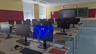 Um auch der Grundschule die Möglichkeit zu geben, die Schüler/innen zeitgemäß zu unterrichten, wurde das Computerkabinett komplett mit 25 Stück digitalen Arbeitsgeräten und Zubehör (Monitore, Tastatur, Maus, Kopfhörer) neu bestückt. Des Weiteren wurde ein mobiles Kabinett, d.h. zwei Ladewagen für die vorhandenen und 25 neu angeschafften Tablets/ Notebooks eingerichtet, um die Aufbewahrung und Lademöglichkeiten zu verbessern.