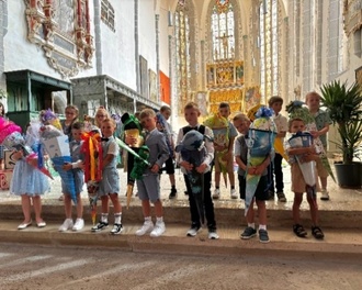 Am Samstag, den 03. August 2024 feierten 30 Abc-Schützen in der Kulturkirche Weißensee mit ihren Familien ihre Schuleinführungsfeier. Obwohl das neue Schuljahr in Thüringen bereits am 01. August 2024 startete und die ABC-Schützen schon Schulluft schnuppern durften, fand die Einschulungsfeier erst zwei Tage später statt. Um 9:30 Uhr versammelten sich Eltern, Großeltern, Geschwisterkinder und Verwandte, um dieses besondere Ereignis nun feierlich zu begehen. Von allen spannungsvoll erwartet, wurden die Mädchen und Jungen von ihren Erzieherinnen aus den THEPRA Kindertagesstätten „Wiesengrün“ in Weißensee und „Kichererbsen“ in Günstedt in die Kirche hineinbegleitet und zu ihren Plätzen in der ersten Reihe geführt. Ein herzliches Dankeschön ging an die Erzieherinnen.