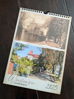 Schnell war die Idee geboren, ein Stück Weißenseer Geschichte bzw. die Sehenswürdigkeiten und bekannte Gebäude Weißensees in einem Jahreskalender darzustellen. Länger dauerte dann die Auswahl der Fotos. Viele alte Fotos und Postkarten haben die Mitglieder vom Heimat- und Geschichtsverein „MeinWeißensee“ e. V. gesichtet und dann für veröffentlichungswürdig befunden. Nun ging es daran, die Fotoobjekte der Neuzeit zu finden und zu fotografieren. Dabei galt es, den genauen Winkel zu treffen, um auch wirklich einen EinszuEins-Vergleich zu bekommen. Manche Gebäude sehen noch genauso aus, einige gibt es gar nicht mehr - zu entdecken gibt es viel.