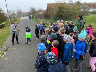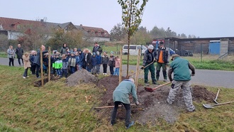 Am Dienstag, den 05. November 2024 wurden in der Ulmenallee durch die Initiative Landschaftspflege Weißensee e.V. elf Ulmen und sechs Traubeneichen gepflanzt, die durch die Stiftung Naturschutz Thüringen gefördert wurden. Zur dieser Baumpflanzung wurden nicht nur Naturfreunde und Vereinsmitglieder, sondern auch Kinder eingeladen. Denn die Kinder sollen zu Baumpaten für die neuen Bäume werden und sich um diese in Zukunft kümmern. Zum jüngsten Baumpaten der Stadt Weißensee wurde der sechsjährige Mika Schröder. Die ersten Klassen unserer Schule durften zuschauen, wie die Bäume von fleißigen Helfern vom Hänger geladen und mit dem Radlader an die passenden Stellen zum Einpflanzen transportiert wurden. Frau Fritsche, die Initiatorin dieser Pflanzaktion, erklärte den Schülern den Umgang mit dem Wurzelballen, den ersten notwendigen Schnitt und die natürliche Resistenz der Laubbaumart Ulme.