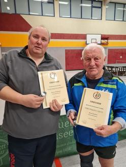 Marko Teichmann und Horst Gautsch erhielten die Ehrennadel des TTTV in Silber.