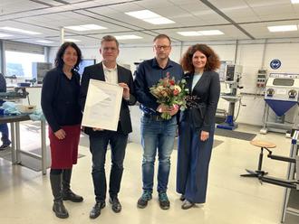 Besonders hervorgehoben wurde dabei das außergewöhnliche Engagement des Unternehmens bereits vor dem Abschluss eines Ausbildungsvertrages. Denn insbesondere bei der Berufsorientierung, egal ob Schülerpraktika, Praxistage oder Elternabende - das fünfköpfige Ausbildungsteam ist hier bereits aktiv. Dazu kommt das langjährige Engagement in der Berufsausbildung mit: hervorragenden Lehr- und Lernbedingungen im werkseigenen Ausbildungszentrum, überdurchschnittlichem Einsatz für die Ausbildung der Jugendlichen und starke Prüfungsergebnisse der Auszubildenden. Das setzen Maßstäbe für die Region.