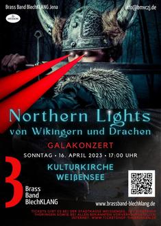 „Achtung - die Nordmänner kommen“ - so oder so ähnlich hallt es am 16. April 2023 durch die Kulturkirche in Weißensee, wenn die preisgekrönte Brass Band BlechKLANG zu einer abenteuerlichen Reise in die nördlichsten Teile Europas einlädt. Der verwegene musikalische Raubzug der Jenaer Ausnahmemusiker führt dabei im Drachenboot vorbei an majestätischen Fjorden, verträumten Mooren und malerischen Fischerdörfern. Doch die scheinbar friedliche Ruhe trügt, mit dynamischer Explosivität und Virtuosität malen die 30 Blechbläser und Schlagwerker unter ihrem Dirigenten Alexander Richter cineastische Klanggemälde im sprichwörtlichen Breitwandklang. Berührende und emotionale, solistische und kammermusikalische Momente treffen dabei ungebremst auf Klangpracht und im besten Wortsinn atemberaubende Effekte, die mit Sicherheit unter die Haut gehen. Mit Musik von Edvard Grieg bis Torstein Aaagard Nilsen, mit bekannten und unbekannteren Meisterwerken aus der zauberhaften Welt Skandinaviens geht es Seite an Seite mit den Wikingern oder wahlweise auf dem Rücken eines Drachens hinein in einen unvergesslichen Konzertabend der Sonderklasse.