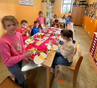Um den Räumlichkeiten ein erfrischend neues Antlitz zu verleihen, wurde natürlich auch wieder viel gebastelt und gemalt. Ostern steht vor der Tür, da kann schon mal ein "Küken aus dem Ei springen", dachten sich viele Kinder.