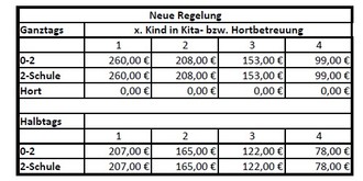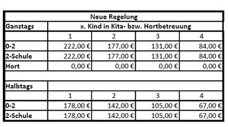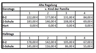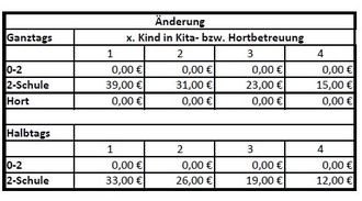 | Ab 01.02.2025 erfolgt eine Erhöhung für die bisherigen Kinder von 2 Jahren bis Schule auf einheitliche Beträge. (siehe Anhänge) | |