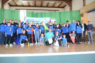 Am Ende der Veranstaltung wartete noch eine kleine Überraschung auf den Vereinsvorsitzenden Uwe Szuggar. Für seinen herausragenden Einsatz im Ehrenamt, wurde ihm im Rahmen der Aktion „Ehrenamt - Helden im Sport. Überrascht sie!“ des Landessportbundes Thüringen die Ehrung seiner ehrenamtlichen Tätigkeit im Verein zu teil. Mit Tröten, Tüchern und einem Banner empfingen ihn seine Kameraden und überreichten ihm sein Überraschungspaket und eine Urkunde. Er ist seit 22 Jahren Mitglied im Verein und hat einen sehr Beitrag dazu geleistet, dass der Verein auf seine jetzige Größe von mehr als 200 Mitgliedern herangewachsen ist. Neben den Abteilungen Bogensport und Tischtennis, führt der SV Blau-Weiß Weißensee die Abteilungen Badminton, Leichtathletik, Walking, Volleyball, Volksport Frauen, Volksport Männer und Volksport Herren. Da diese Veranstaltung ohne die tatkräftige Unterstützung der über 30 engagierten Helfer und Helferinnen nicht möglich gewesen wäre, möchten wir uns noch einmal herzlich für ihre Hilfe und das tolle Catering bedanken. Des weiteren danken wir den Stadträten sowie der Stadtverwaltung Weißensee für ihre großzügige finanzielle Unterstützung der Renovierungsmaßnamen im Schützenhaus. Auf ein baldiges Wiedersehen und „alle ins Gold“, die Abteilung Bogensport des SV „Blau-Weiß 1921“ Weißensee e.V.