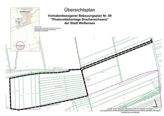 Zusätzlich kann der Vorhabenbezogenen Bebauungsplanes Nr. 09 "Photovoltaikanlage Drachenschwanz“ der Stadt Weißensee im Internet unter www.weissensee.de eingesehen werden.