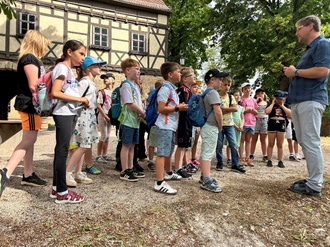 Auch die zweiten Klassen waren unterwegs, auf der schönen Runneburg und statteten Herrn Trautmann einen Besuch ab. Der führte durch die Burg und erzählte dabei so manche interessante Geschichte aus alter Zeit, über die Landgrafen, das Leben auf der Burg sowie über den Brunnen und die Funde, die darin verborgen waren.