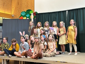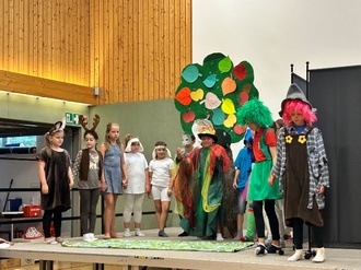 Zum Theater verwandelte sich die Turnhalle am Donnerstag. Denn an unserer Schule spielen die Kinder gerne Theater, so dass gleich zwei Gruppen, nämlich die Musical-AG und die Theater-AG ein Stück einstudierten. Diese Schüler vertraten im Rahmen der Schultheatertage Anfang Juni sogar unsere Schule mit zwei tollen Stücken in Sömmerda. „Moosmutzel und der Traum vom Märchenwald“ sowie „Löwenmutig und Tigerstark“ wurden an diesem Tag nun auch nur für unsere Schulgemeinschaft aufgeführt. Zwei wirklich schöne Stücke, die die Zuschauer durch Gesang, wertvolle Gedanken und auch Witz begeisterten.