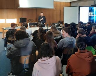 Der Nahost-Experte Dr. Martin Schäuble besuchte am 7. März 2024 den Jahrgang 9 der Peter-Dewes-Gemeinschaftsschule Losheim.
