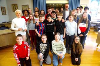 Beim Besuch im Rathaus erläuterte die Fairtrade-AG wie sie Fairtrade im Schulalltag umsetzt bzw. integriert.