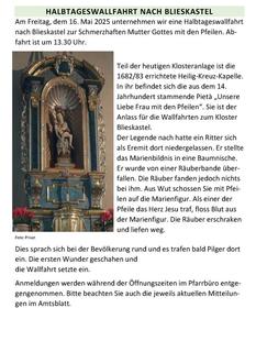 Dienstag 26. August Tagesfahrt Maria Martental und Klausen
