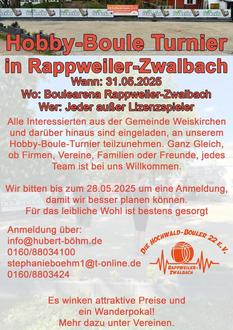 am 03. und 04. Mai fand die Landesmeisterschaft Doublette Mixte sowie Qualifikation zur Teilnahme an der Deutschen Meisterschaft des Saarländischen Bouleverbandes am 03. und 04. Mai auf dem Gelände des Vereins „Die Hochwald-Bouler 22 e. V.“ in Rappweiler-Zwalbach statt. Hier traf sich die Boule Elite aus dem Saarland. Als Bürgermeister der Gemeinde durfte ich die Begrüßung der Veranstaltung übernehmen. Nach der Begrüßung folgten spannende Boule-Spiele. Für mich persönlich ein besonderes Highlight und ein tolles, sportliches Event für unsere Gemeinde.