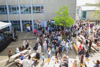 Während das künstlerische Rahmenprogramm auf dem Schulhof vor dem Rundbau stattfand, wurde in den Klassenräumen und dem übrigen Schulhof ein bunter Strauß von Attraktionen präsentiert.