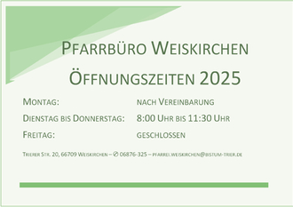 | Weisk. | 08:00 Uhr | das Pfarrbüro ist nicht besetzt |