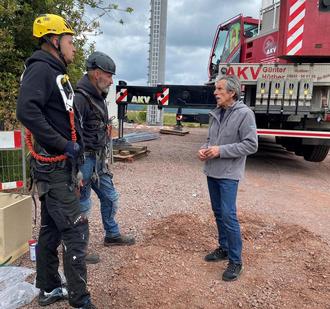 Ortsvorsteher Helmut Theis bedankt sich bei den Monteuren für die zügige und sorgfältige Arbeit. In einigen Wochen werden die Bürgerinnen und Bürger in unserer Gemeinde einen besseren und schnelleren Handyempfang haben.