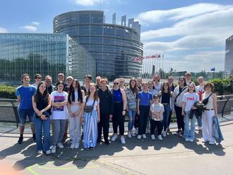 Am 27. und 28. Mai fand die jahrgangsübergreifende Studienfahrt der PDG statt. Insgesamt 26 Schülerinnen und Schüler der Klassenstufen 9 bis 12 fuhren unter der Leitung der GW- und Französisch-Lehrerin Sandra Zurek-Schönfließ und mit dem Schulleiter Marc-Oliver Richter in das nahe Elsass und die Moselle.