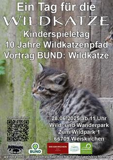 Am 28. Juni 2025 feiern die Wildparkfreunde Hochwald e.V. gemeinsam mit der Hochwald Touristik Weiskirchen das 10-jährige Bestehen des Wildkatzenpfades im Wild- und Wanderpark Weiskirchen.