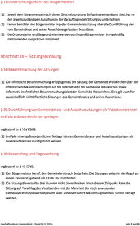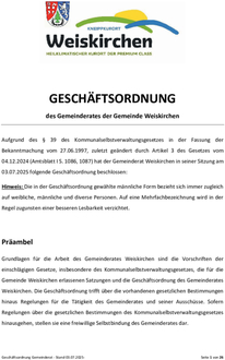 Neue Geschäftsordnung für den Gemeinderat der Gemeinde Weiskirchen
