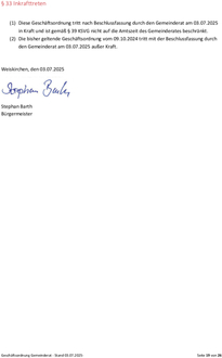 Der Gemeinderat der Gemeinde Weiskirchen hat in seiner Sitzung am 03.07.2025 eine neue Geschäftsordnung beschlossen. Die neugefasste Version wird nachstehend veröffentlicht.