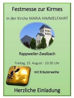 Nicht nur im Kirmeshochamt am Hochfest Maria Himmelfahrt am 15.08.2025 um 10:30 Uhr in Rappweiler werden die Krautwische gesegnet.