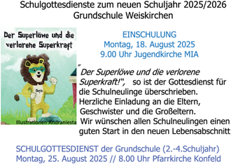 | Rappweiler | 09:00 Uhr | Einschulungsgottesdienst in der Jugendkirche "MIA" |